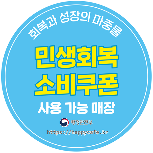 해피카페에서 민생회복 소비쿠폰 사용가능 매장 스티커 파일을 배포하니 다운로드 받아서 권장 위치에 부착해 놓으시기 바랍니다. 배포하는 파일은 아래아 한글용, 파워포인트용, 워드용, 원본이미지 입니다.