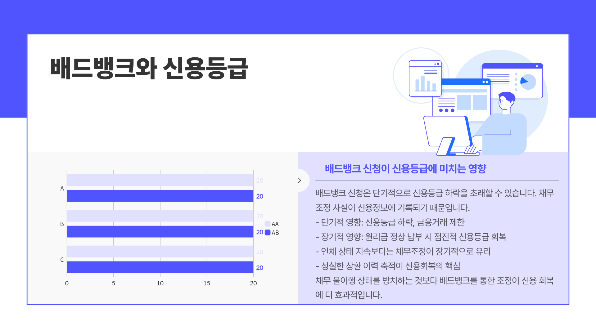 - 배드뱅크: 채무를 조정하여 장기간 분할 상환