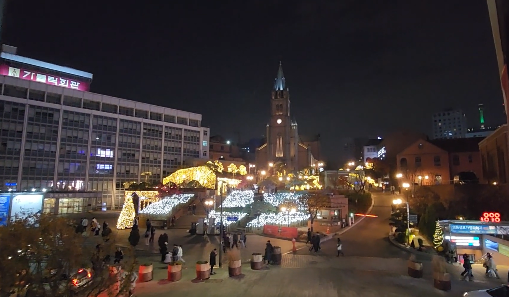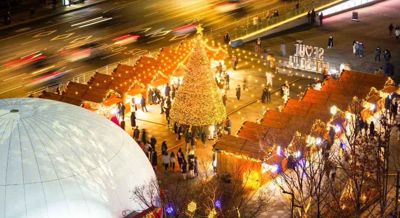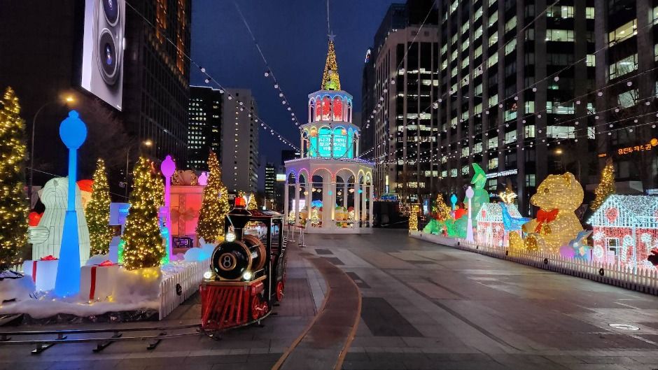 서울의 크리스마스를 대표하는 장소는 단연 명동입니다. 명동성당 앞마당에는 대형 트리가 세워지고, 주변 상점들은 크리스마스 테마 장식으로 꾸며집니다. 밤이 되면 거리 전체가 황금빛으로 물들며, 시민과 관광객으로 북적입니다. 따뜻한 조명과 캐럴이 어우러진 명동의 거리는 서울에서 가장 전통적인 크리스마스 분위기를 느낄 수 있는 곳입니다.